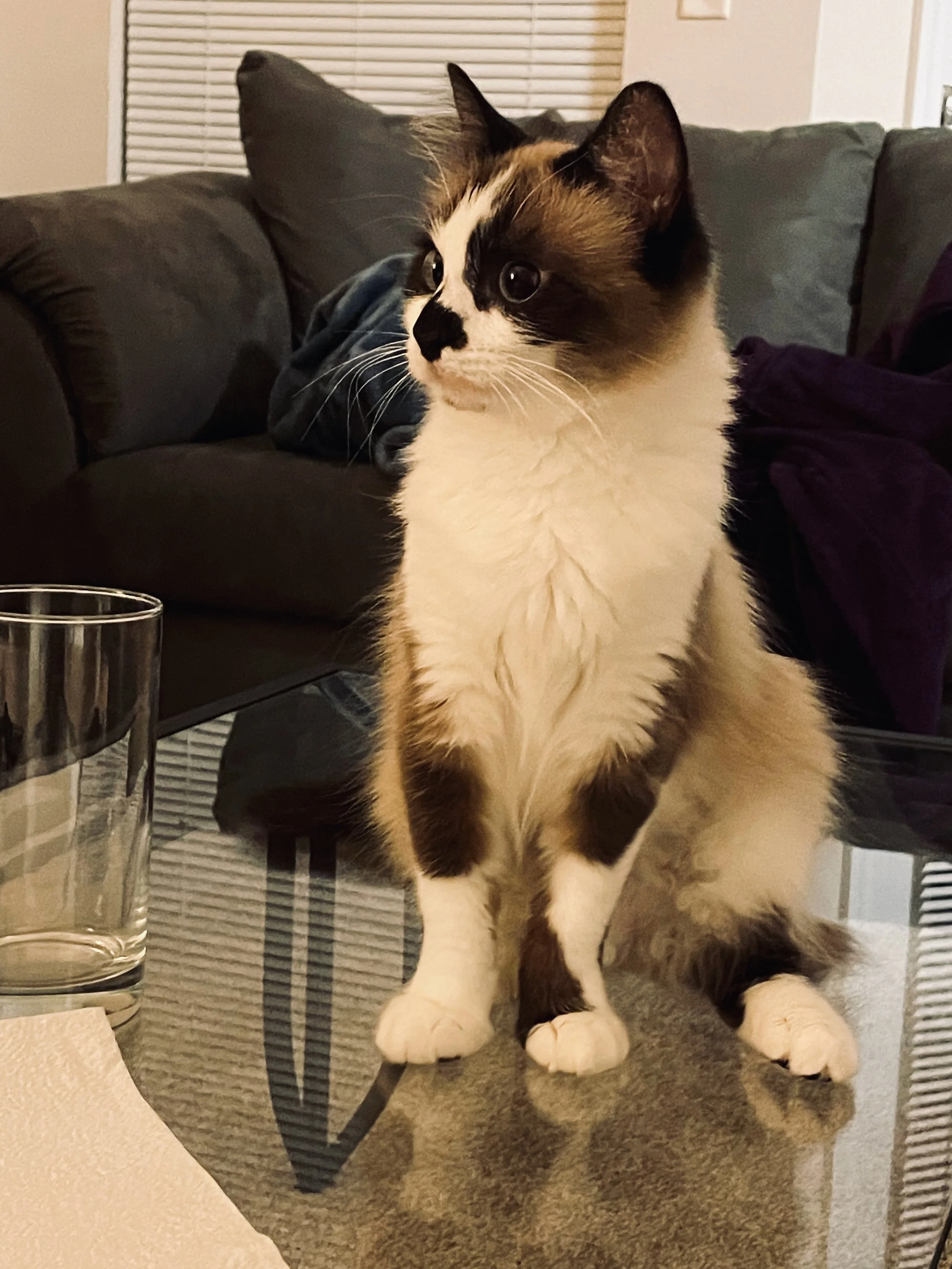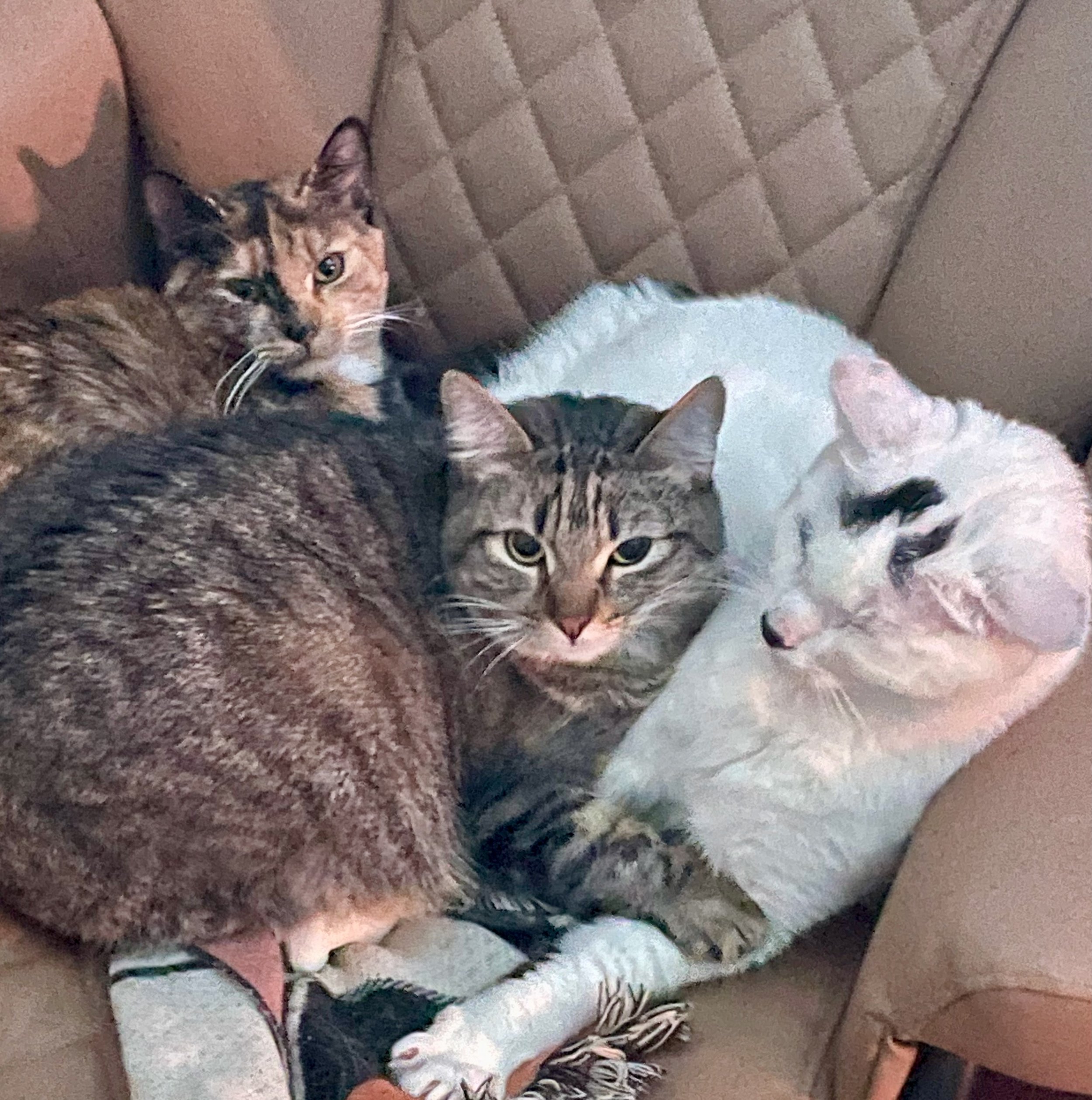 August 1: Adoption of a pregnant stray kitty at about 8 months old, about to give birth to her litter of 3