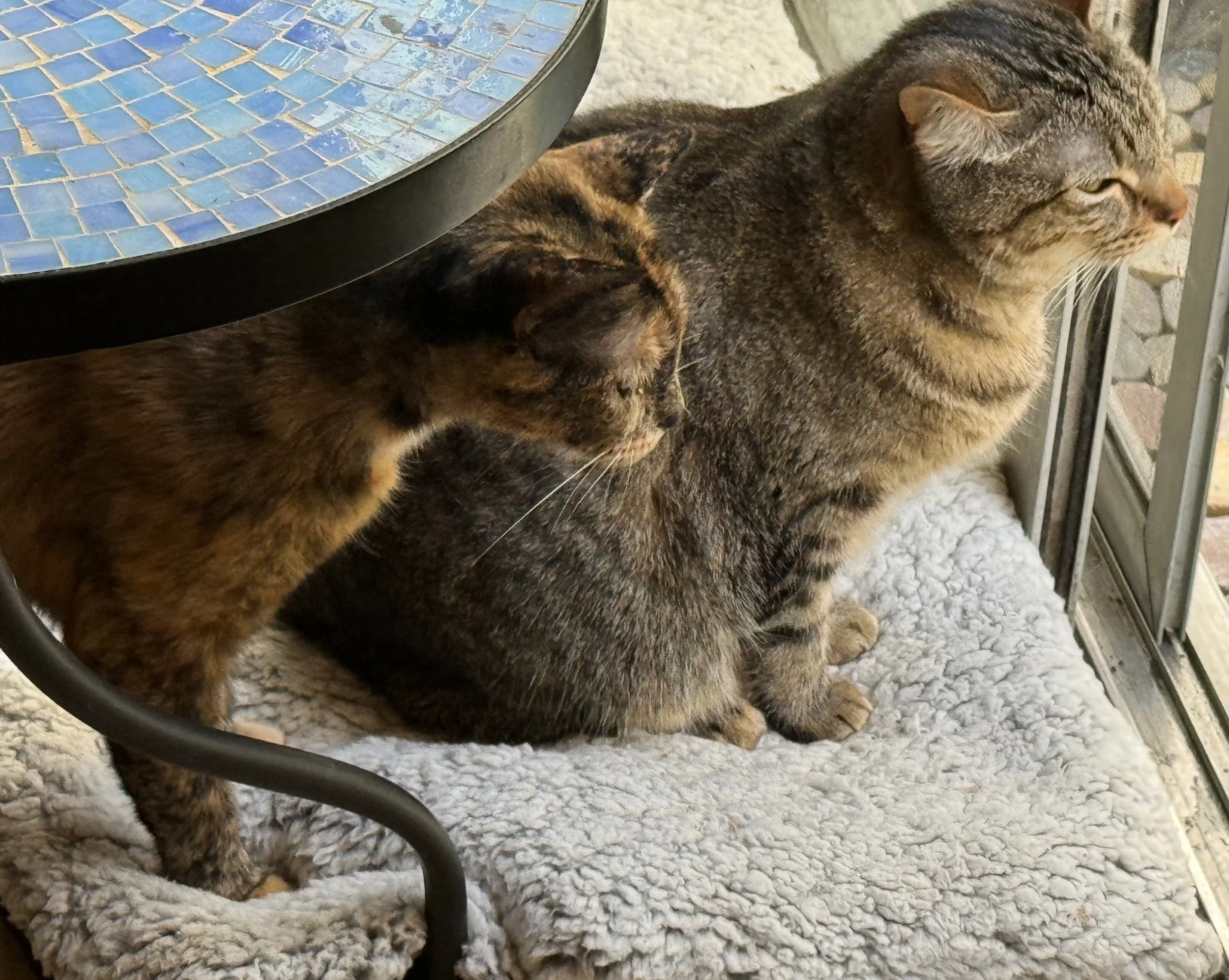 With Jenny, Baby S and Ma L. went to El Paso in the Thanksgiving week. The following month, they again went with Jenny, who transported them in a cat carrier — this time to Indiana.